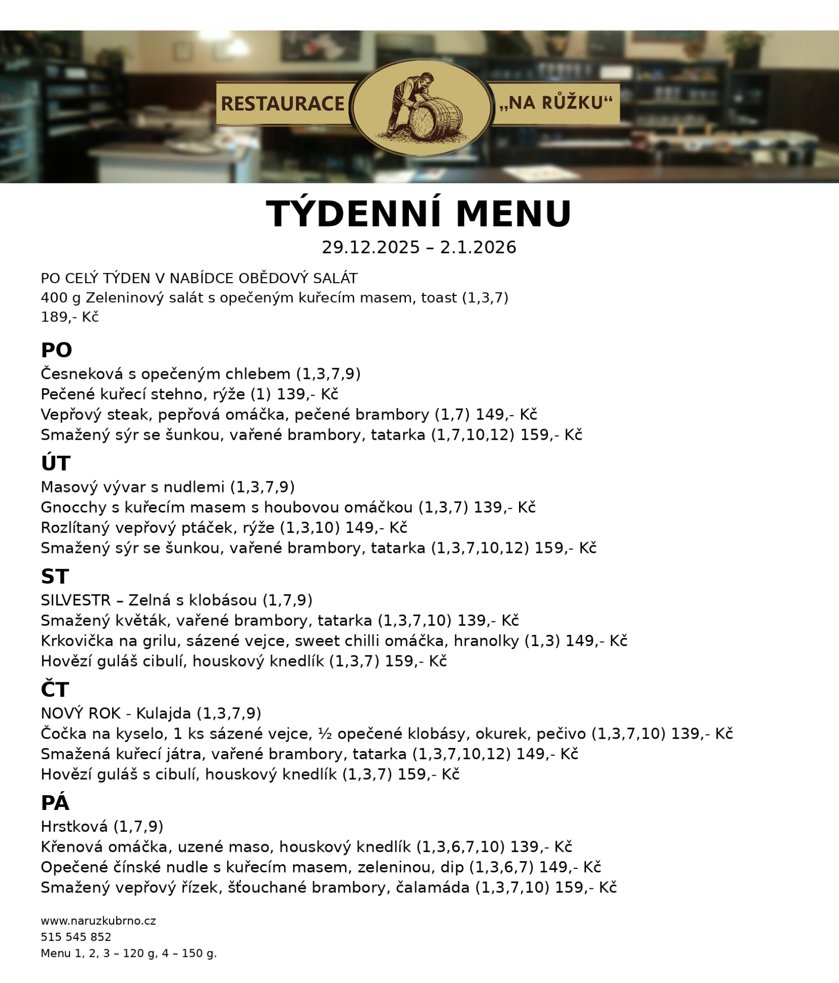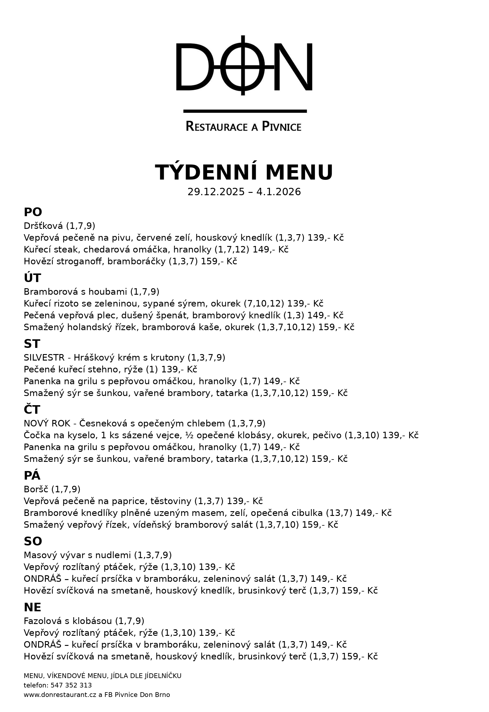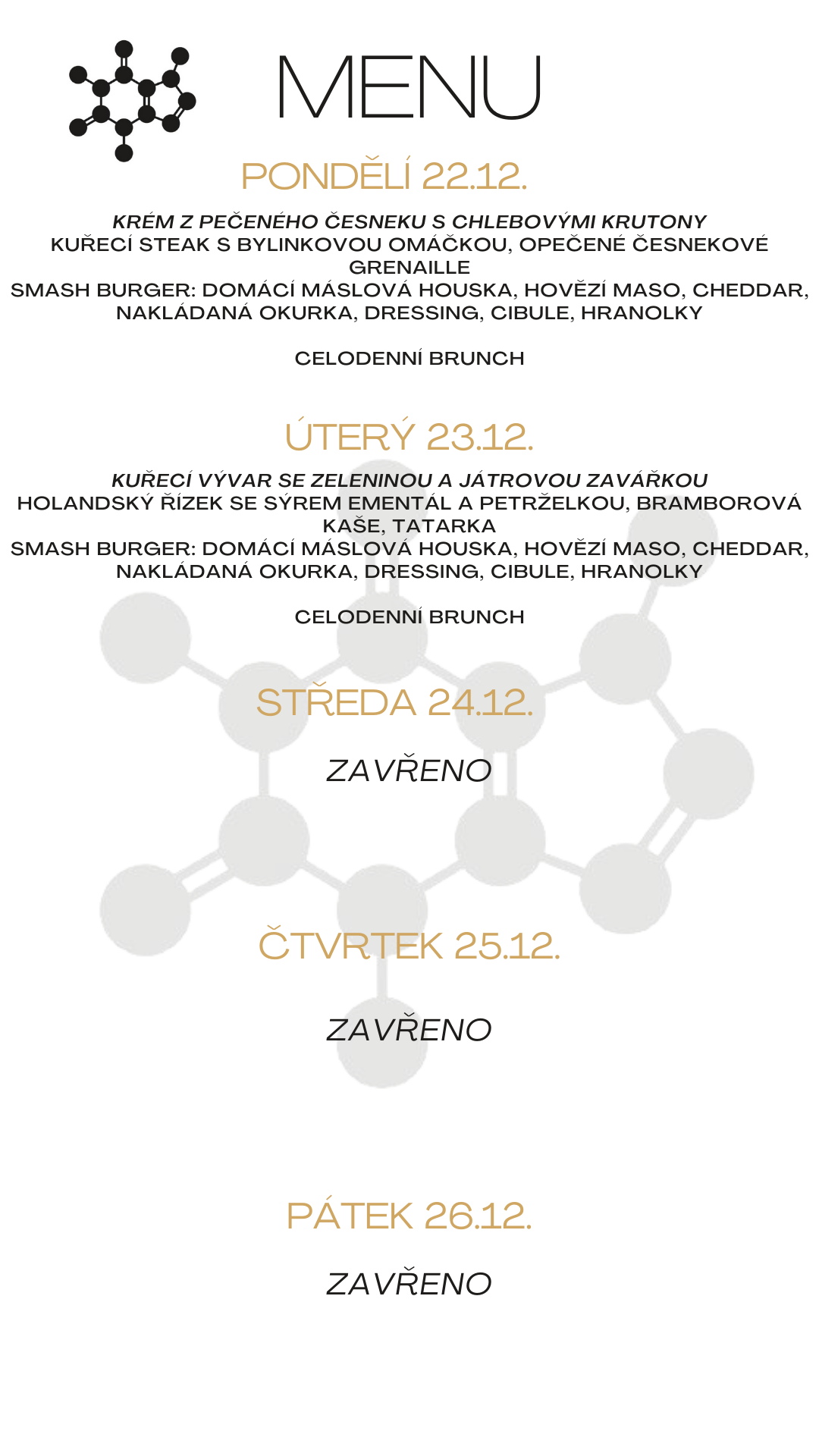 Náš robot zatím neumí automaticky aktualizovat menu této restaurace. Špatný robot! 🤖 Pokud chcete menu této restaurace, kontaktujte je prosím na 📞 777 646 063 a požádejte je o zveřejnění denních menu na lepšímenu.cz. Můžete jim také poslat tento odkaz: https://www.lepsimenu.cz/pro-restaurace