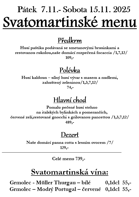 - Pečená svatomartinská husa se zelím a knedlíky549 Kč