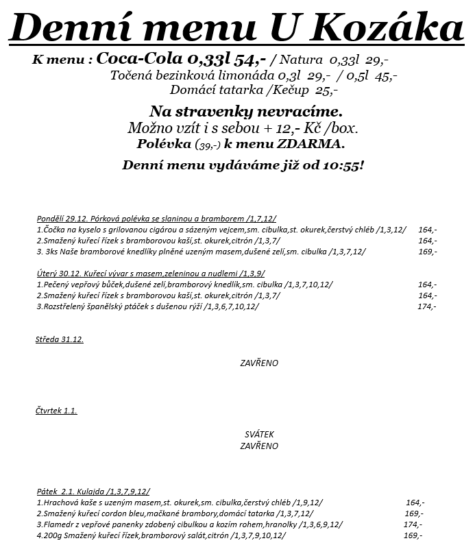 Náš robot zatím neumí automaticky aktualizovat menu této restaurace. Špatný robot! 🤖 Pokud chcete menu této restaurace, kontaktujte je prosím na 📞 544 234 577 nebo 📧 pizzerie@k1steakhouse.cz a požádejte je o zveřejnění denních menu na lepšímenu.cz. Můžete jim také poslat tento odkaz: https://www.lepsimenu.cz/pro-restaurace