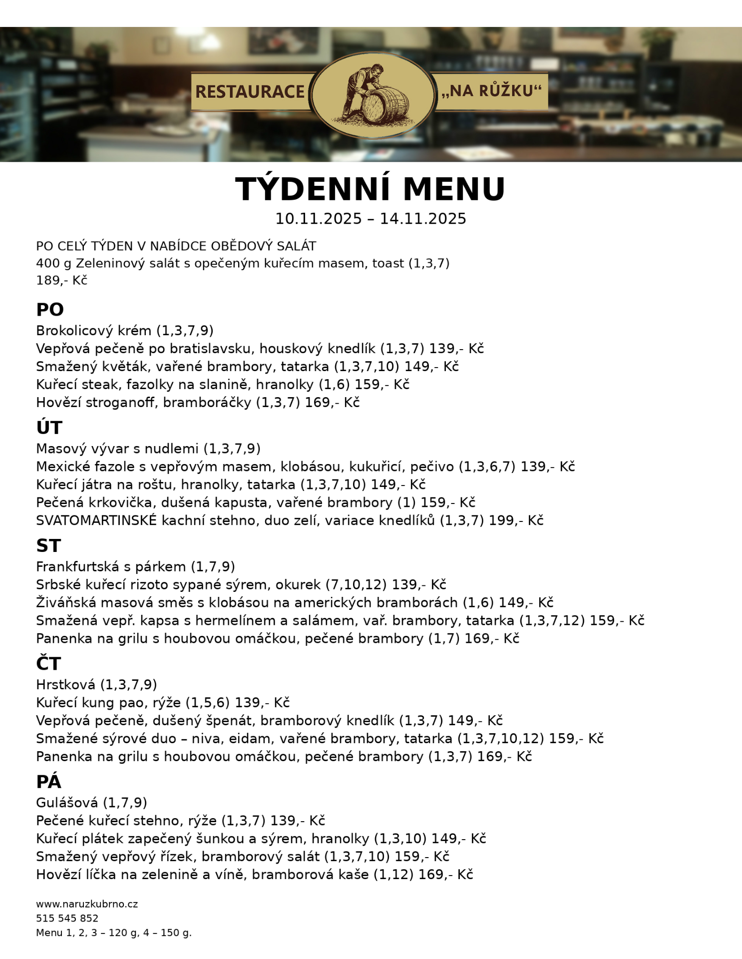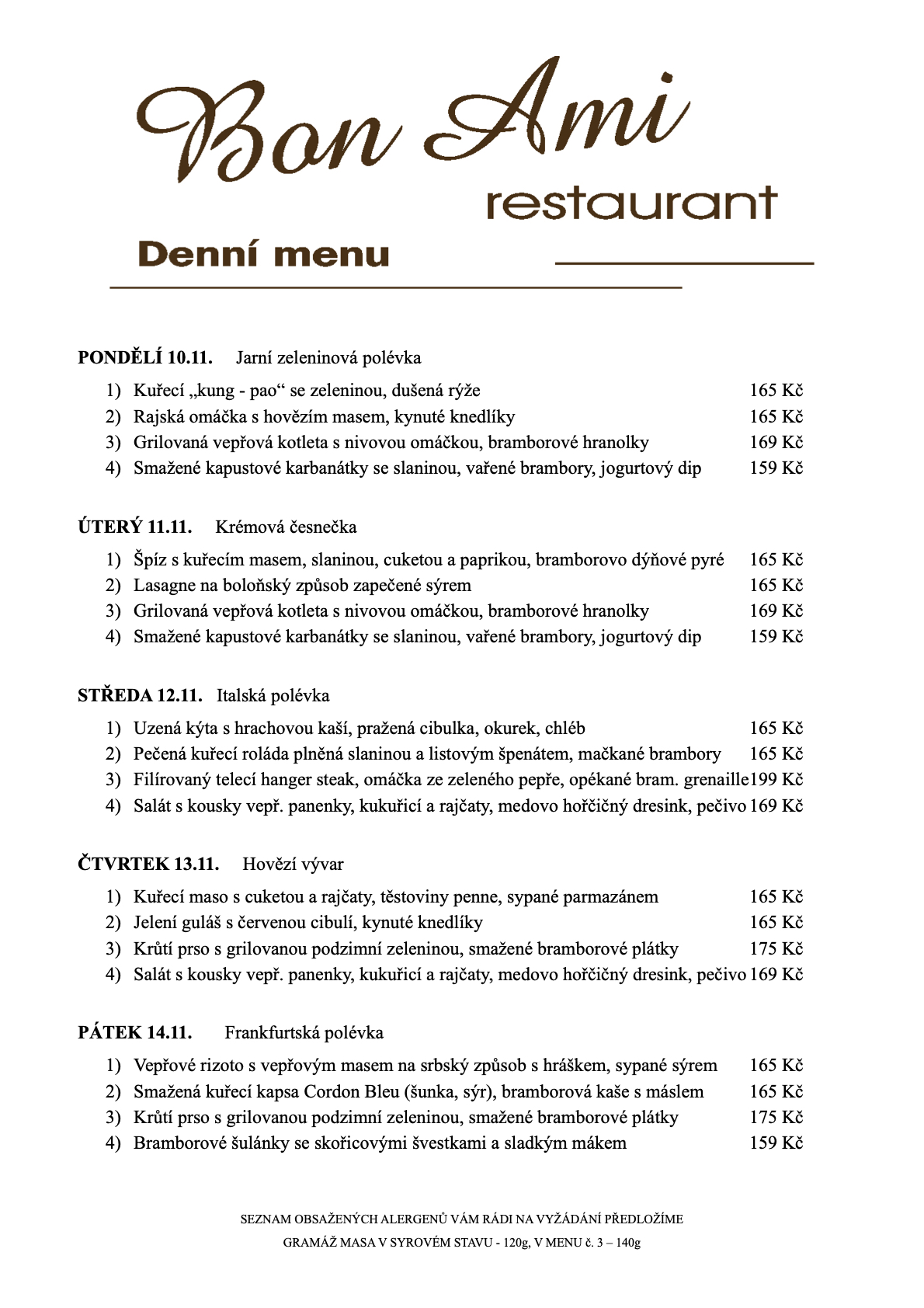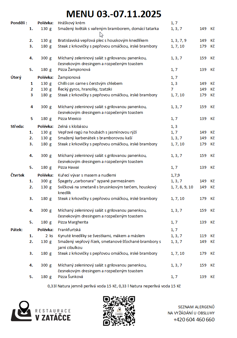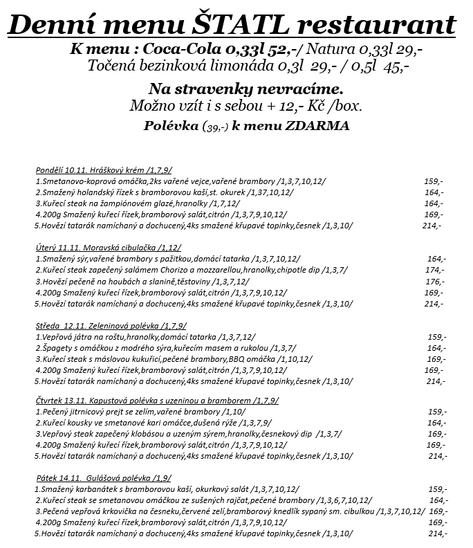 Náš robot zatím neumí automaticky aktualizovat menu této restaurace. Špatný robot! 🤖 Pokud chcete menu této restaurace, kontaktujte je prosím přímo a požádejte je o zveřejnění denních menu na lepšímenu.cz. Můžete jim také poslat tento odkaz: https://www.lepsimenu.cz/pro-restaurace